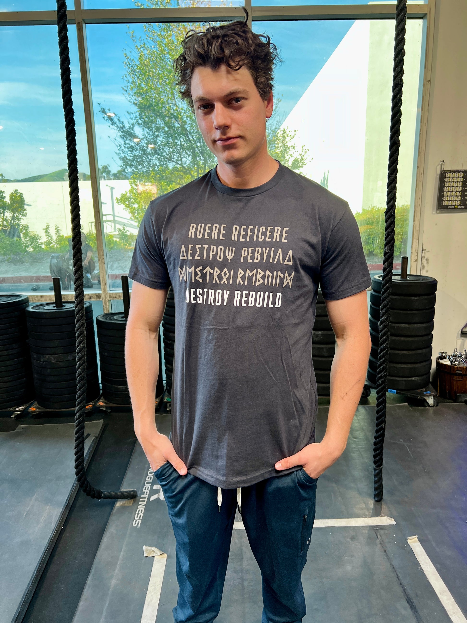 **Graphite Grey** crew neck short sleeve shirt with Civilizations design printed on Next Level Apparel T-shirt. Fitted yet mobile shirt that will not get in the way of everyday activity. Perfect for working out as well as wearing out in the community.